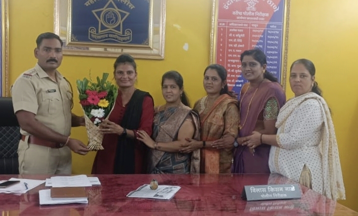 इंदापूर पोलीस स्टेशनच्या पोलीस निरीक्षक पदी नुकतीच नाळे यांची नियुक्ती झाली असून त्यांचे इंदापूर मध्ये भाजपच्या महिला मोर्चाच्या वतीने सत्कार करण्यात आला.यावेळी शितल साबळे यांनी नाळे यांच्या पुढील वाटचालीसाठी शुभेच्छा देत महिलांचे प्रश्न मार्गी लावण्यासाठी मदतीची अपेक्षा व्यक्त केली.तर शहर अध्यक्षा माधुरी भराटे यांनी इंदापूर पोलीस स्टेशन कडून महिलांना न्याय मिळेल अशा प्रकारे आपले काम राहावे म्हणून शुभेच्छा दिल्या.