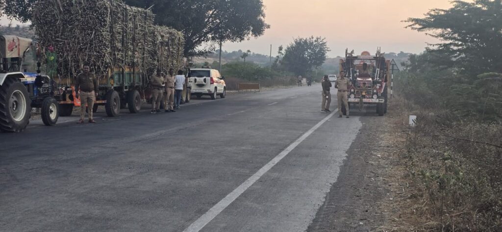 भिगवण : (ता.१७) ऊस वाहतूक करणार्या वाहनांच्या सुरक्षिततेसाठी भिगवण पोलिसांकडून विशेष मोहीम राबविण्यात आली. या मोहिमेअंतर्गत अचानक सहाय्यक पोलीस निरीक्षक विनोद महांगडे यांनी भेट देत ऊस वाहतूक करणार्या वाहनांची तपासणी करत १२ ट्रॅक्टर वर कारवाई केली .बारामती ऍग्रो तसेच इतर कारखान्यात येणार्या ट्रॅक्टर, मिनी ट्रॅक्टर आणि बैलगाडी चालकांची कसून कागदपत्रे तसेच नियमित आवश्यक असणाऱ्या बाबी तपासात वाहन चालकांना आवश्यक सूचना देण्यात आल्या.चालकांना चारित्र्यप्रमाणपत्र कार्यालयात जमा करणे, वाहनाचा विमा, परवाना, आधारकार्ड आदी कागदपत्रे सोबत ठेवणे, दारू पिऊन वाहन न चालविणे, तसेच वाहन बिघाड झाल्यास मार्गाच्या कडेला थांबवून टायरला स्टॉपर लावणे अशा महत्त्वपूर्ण सूचना दिल्या. चालत्या वाहनांवर मोठ्या आवाजात गाणी वाजवू नयेत आणि गरज भासल्यास डायल ११२ वर संपर्क साधावा, असेही त्यांनी सांगितले.