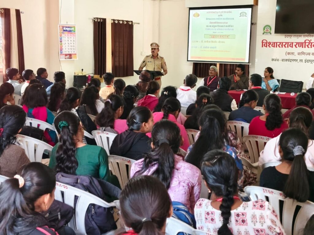 वालचंदनगर -(ता.१२) कळंब (ता. इंदापूर) यांच्या सावित्रीबाई फुले पुणे विद्यापीठ आणि विश्वासराव रणसिंग महाविद्यालय(कला, वाणिज्य व विज्ञान) संयुक्त विद्यमाने विद्यार्थी विकास मंडळातंर्गत ‘निर्भय कन्या अभियान’ एकदिवसीय कार्यशाळा संपन्न झाली. कार्यशाळेचे प्रास्ताविक विद्यार्थी विकास अधिकारी प्रा. डॉ. रामचंद्र पाखरे यांनी करून’निर्भय कन्या अभियान’ कार्यशाळेची रुपरेषा स्पष्ट केली.