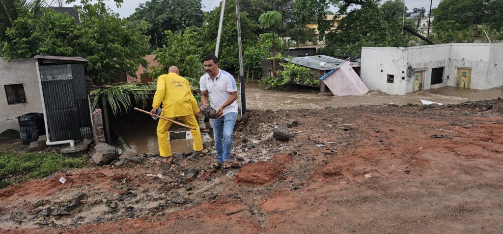 इंदापुर तालुक्यातील सणसर येथे मदत कार्यात स्वतः इंदापूर चे गटविकास अधिकारी सचिन खुडे यांनी घटनास्थळी मदत कार्यात उतरून पोलीस प्रशासना सोबत मदत केली.
